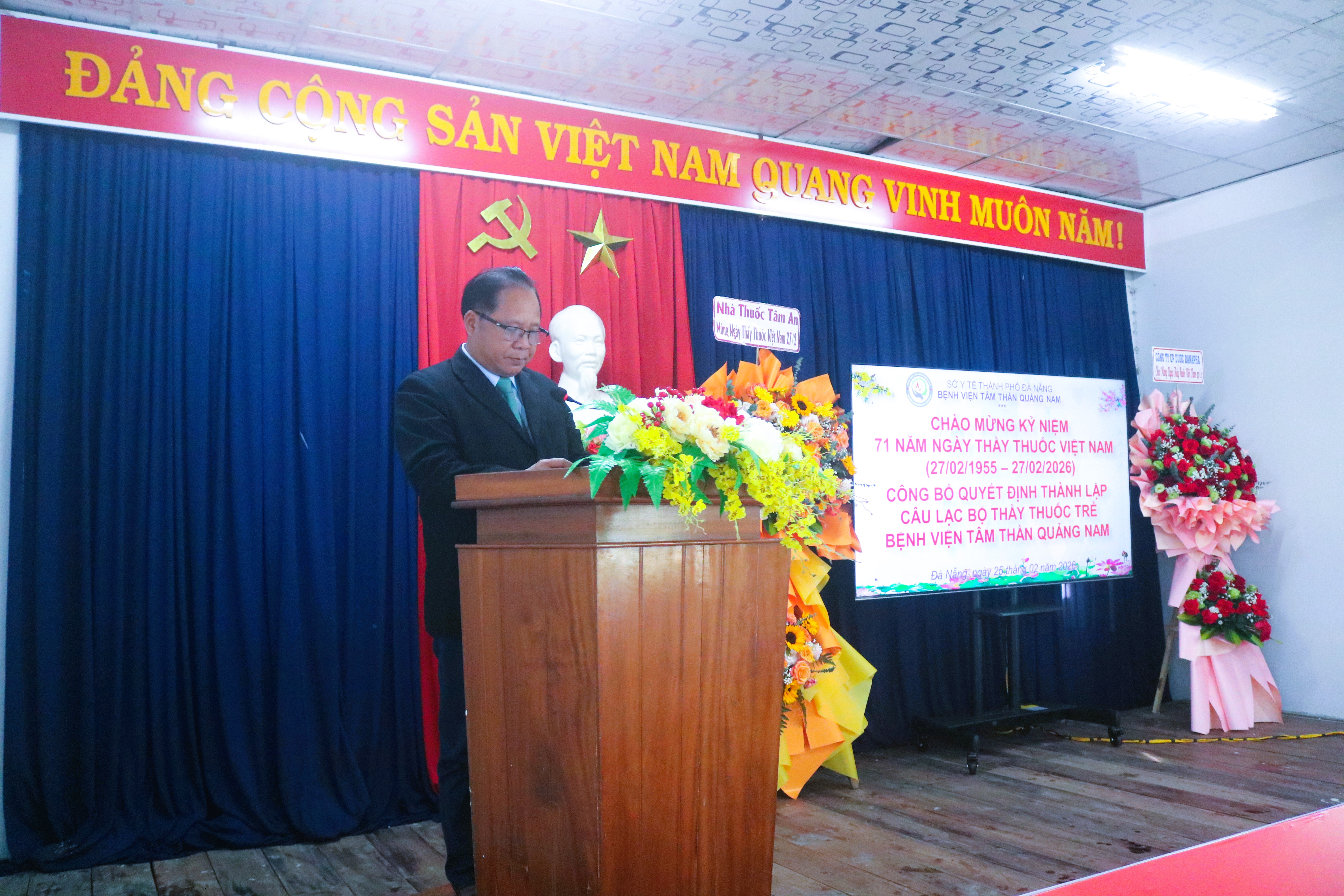 Được Cấp ủy Chi bộ, Ban Giám đốc chỉ đạo, định hướng và khích lệ, Câu lạc bộ Thầy thuốc trẻ Bệnh viện Tâm thần Quảng Nam được thành lập và chính thức ra mắt, lấy ngày 27/2/2026 nhân kỷ niệm 71 năm Ngày Thầy thuốc Việt Nam là dấu mốc đánh dấu sự hình thành và phát triển. Tại chương trình chào mừng kỷ niệm,  BSCKII. ChRưm Thanh Vòm – Bí Thư Chi bộ, Giám đốc Bệnh viện đã lên trao Quyết định thành lập Câu lạc bộ Thầy thuốc trẻ Bệnh viện Tâm thần Quảng Nam.